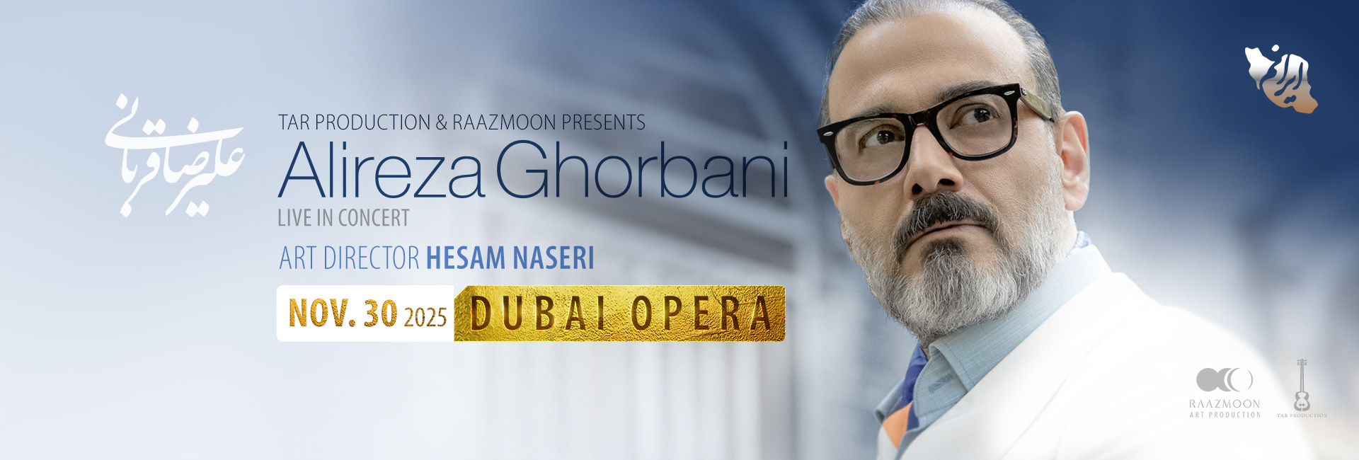 Alireza Ghorbani, one of the most renowned and celebrated voices in Iranian music, is set to take the stage around the world with his latest concert tour: Iranam. Known for his powerful voice and deeply emotional performances, Ghorbani has captivated audiences across the globe — from Paris and London to Toronto and Dubai — and continues to be one of the most influential figures in contemporary Persian music.