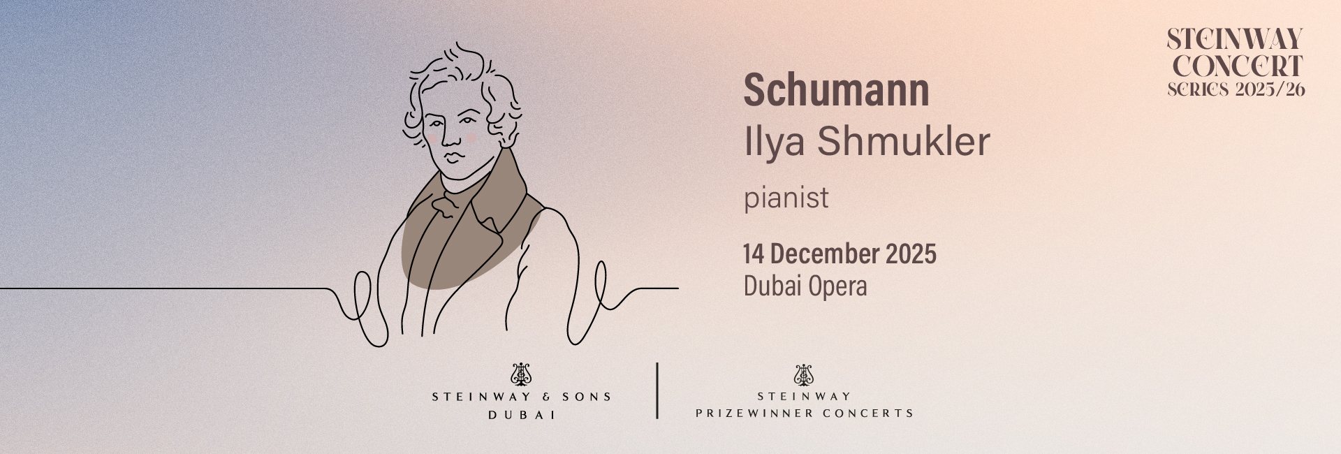 Join internationally acclaimed pianist Ilya Shmukler for an unforgettable evening dedicated to the poetic genius of Robert Schumann. Taking place in the intimate setting of the Dubai Opera Studio, this recital offers a rare opportunity to experience Schumann’s music brought to life by one of today’s most expressive young pianists.