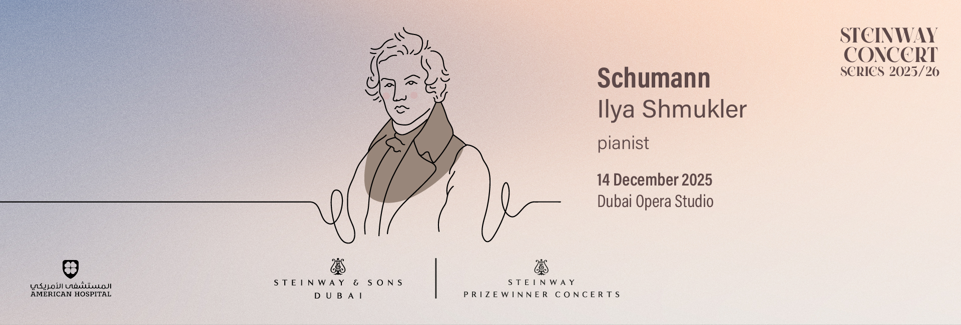 Join internationally acclaimed pianist Ilya Shmukler for an unforgettable evening dedicated to the poetic genius of Robert Schumann. Taking place in the intimate setting of the Dubai Opera Studio, this recital offers a rare opportunity to experience Schumann’s music brought to life by one of today’s most expressive young pianists.
