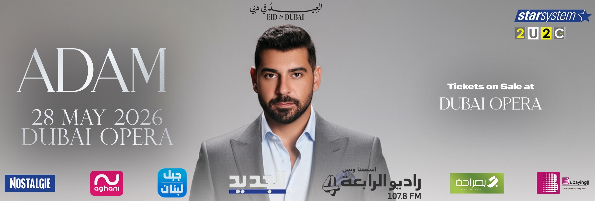 With a string of unforgettable hits like “Ala Bali” and “Khelset El Hekaya,” plus chart-topping TV soundtracks, Adam has continued to captivate audiences across the Arab world. His incredible ability to perform in Lebanese, Egyptian, and Khaleeji dialects showcases a rare versatility that keeps fans coming back for more.
